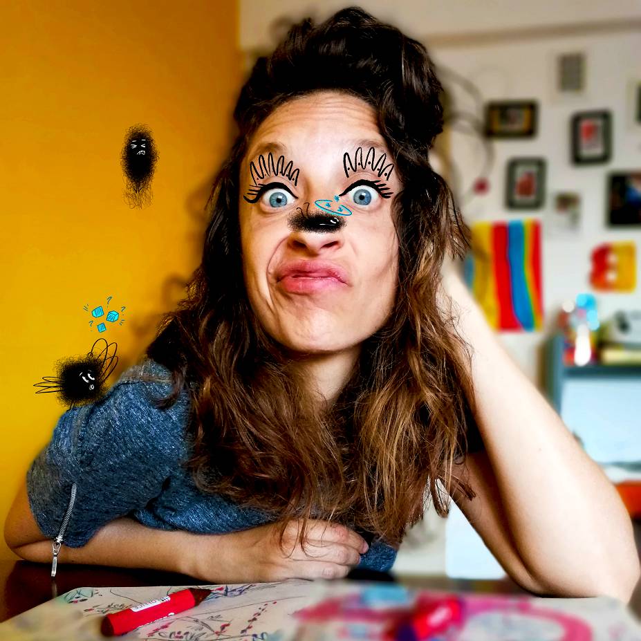 Como me chamo? Vanessa Namora Caeiro. (Aquela ali no meu ombro já conheces. É a Antonieta!) De onde sou? Sou alfacinha. Nasci em Lisboa, em 1980. Qual e a minha formação? Licenciei-me em Artes Plásticas e Fotografia pela Faculdade de Belas Artes da Universidade de Lisboa. E depois do curso? O que fiz? Como artista plástica, realizei varias exposições coletivas e inpiduais, tanto em Portugal como no estrangeiro. E há mais… Fiz Cinema de Animação e trabalhei em curtas-metragens de autor, series infantis, anúncios publicitários e cenografias visuais para peças de teatro e outros espetáculos. Mais tarde, fui coordenadora da equipa de grafismo da CMTV, mas decidi voltar a minha grande paixão e, atualmente, faço cinema de animação na equipa da Sardinha em Lata, em Lisboa. Como surgiu a Aranha Antonieta? A Antonieta esta na minha cabeça há muito tempo. Mas só agora saltou para o papel. A Aranha Antonieta e o AEIOU é a minha grande estreia enquanto autora. Um livro que sonhei, escrevi e ilustrei. E um projeto que eu adoro, cheio de cor e de humor. Espero que gostes!